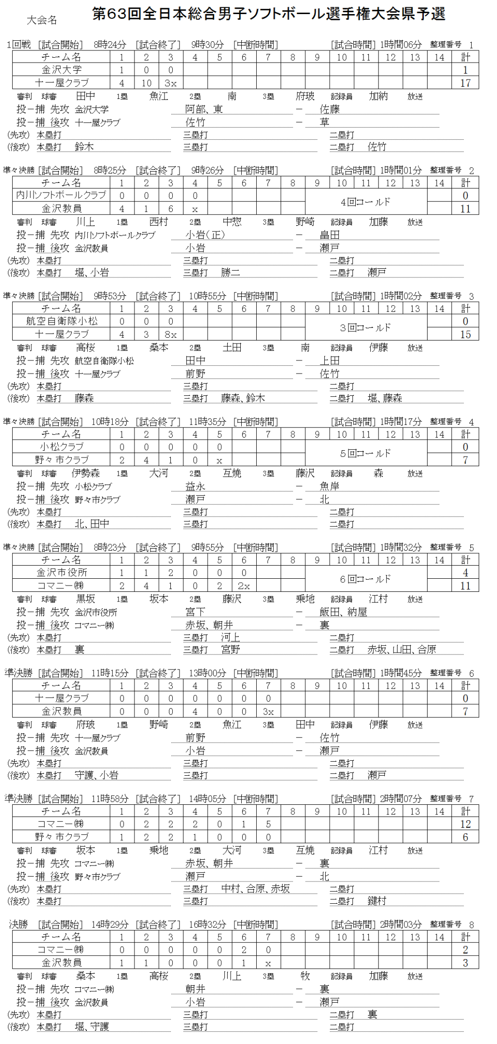 第63回全日本総合男子選手権大会県予選 記録(スコア―)