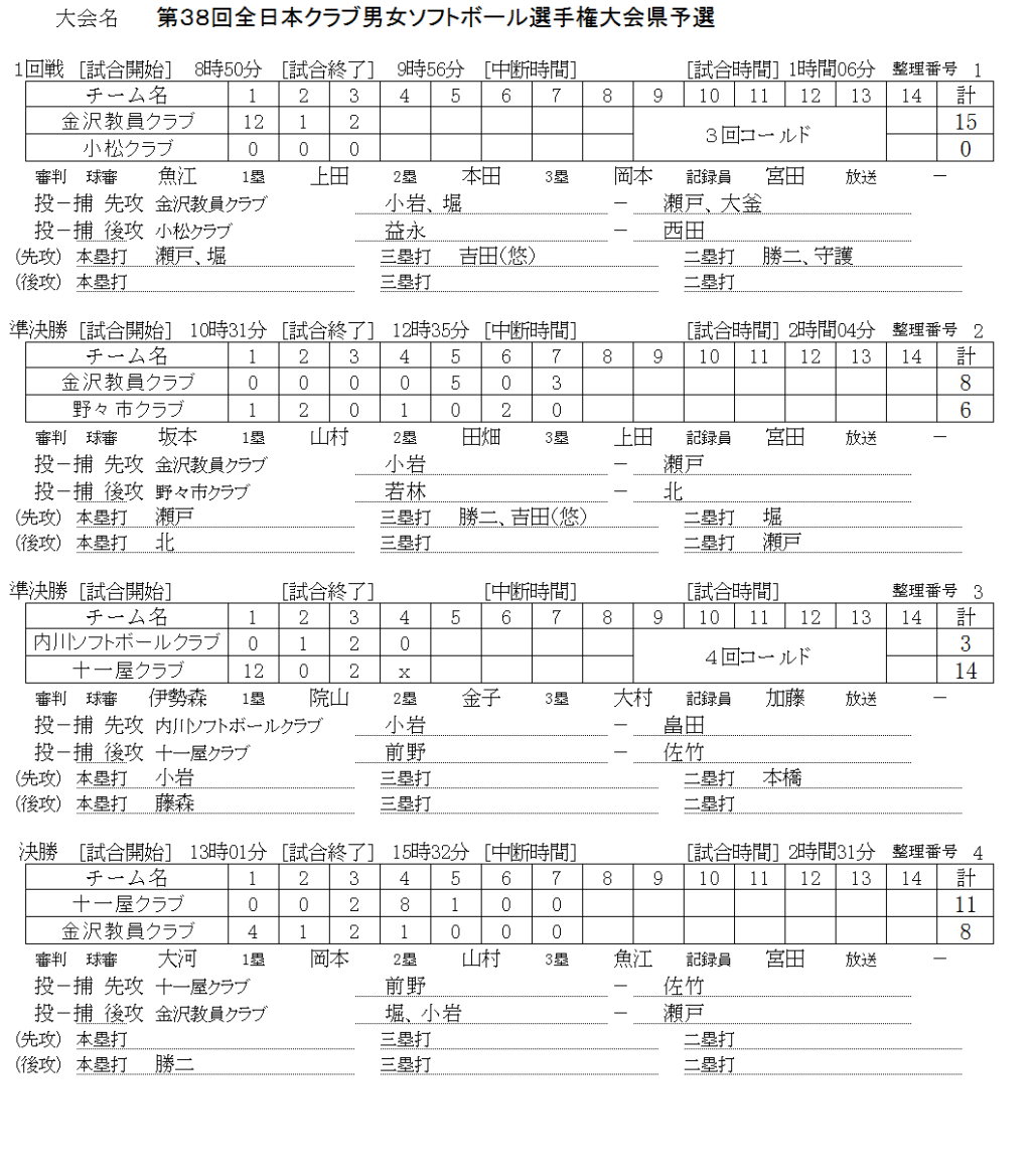 第38回全日本クラブ男女選手権大会県予選 記録(スコア―)