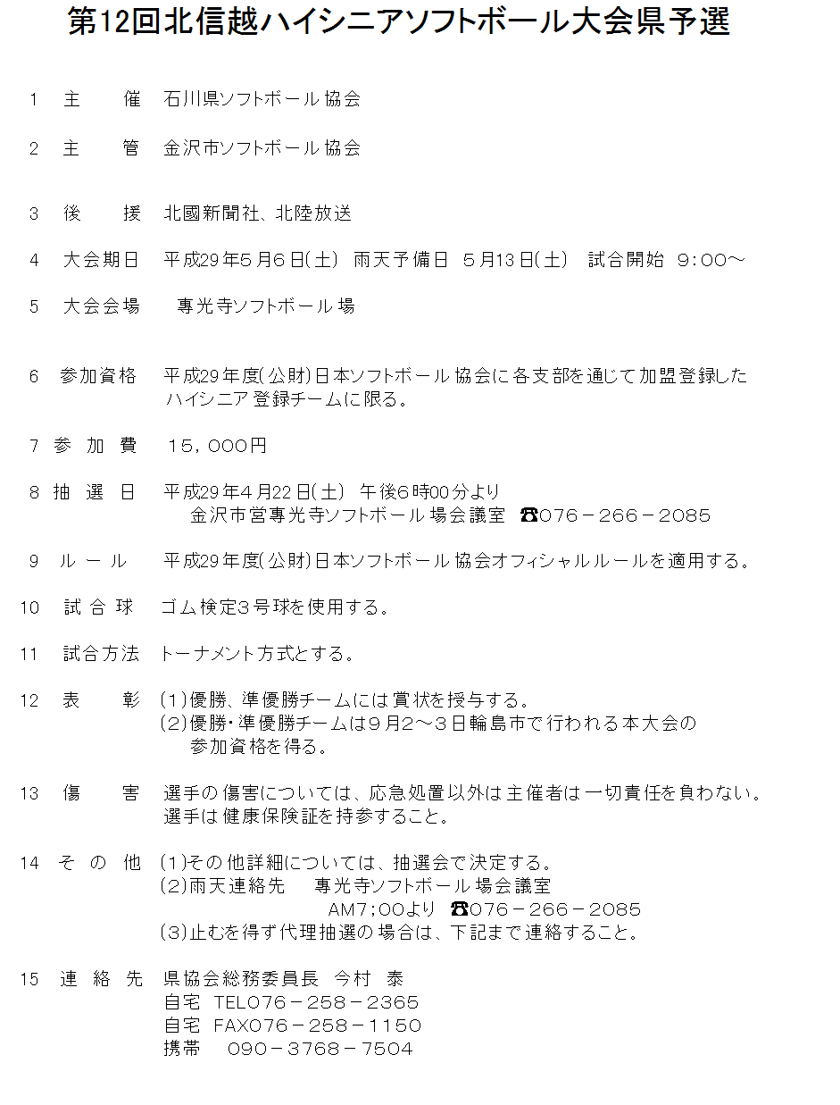 2017 北信越ハイシニア県予選 要項