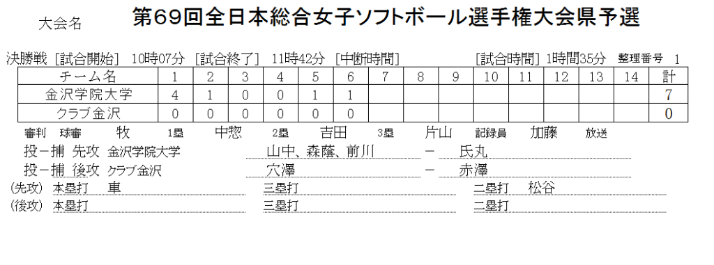 第69回全日本総合女子選手権大会県予選 記録(スコア―)