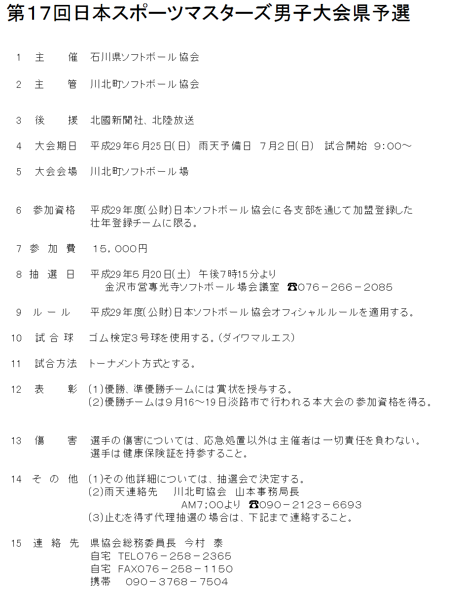 第17回日本スポーツマスターズ男子大会県予選 要項