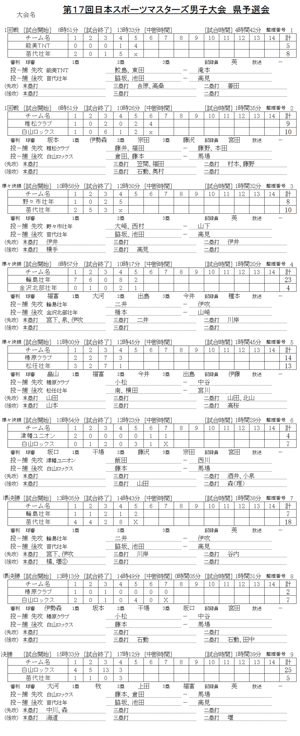 第17回日本スポーツマスターズ男子大会 県予選会 記録(スコア―)