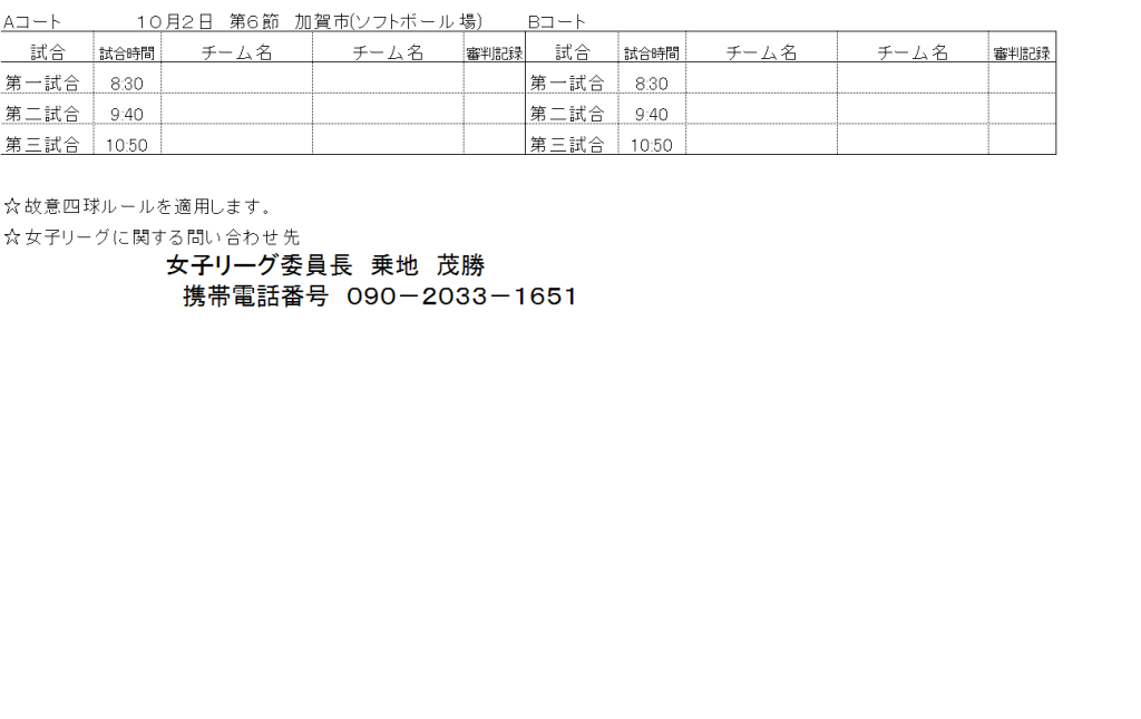 女子リーグ第六節