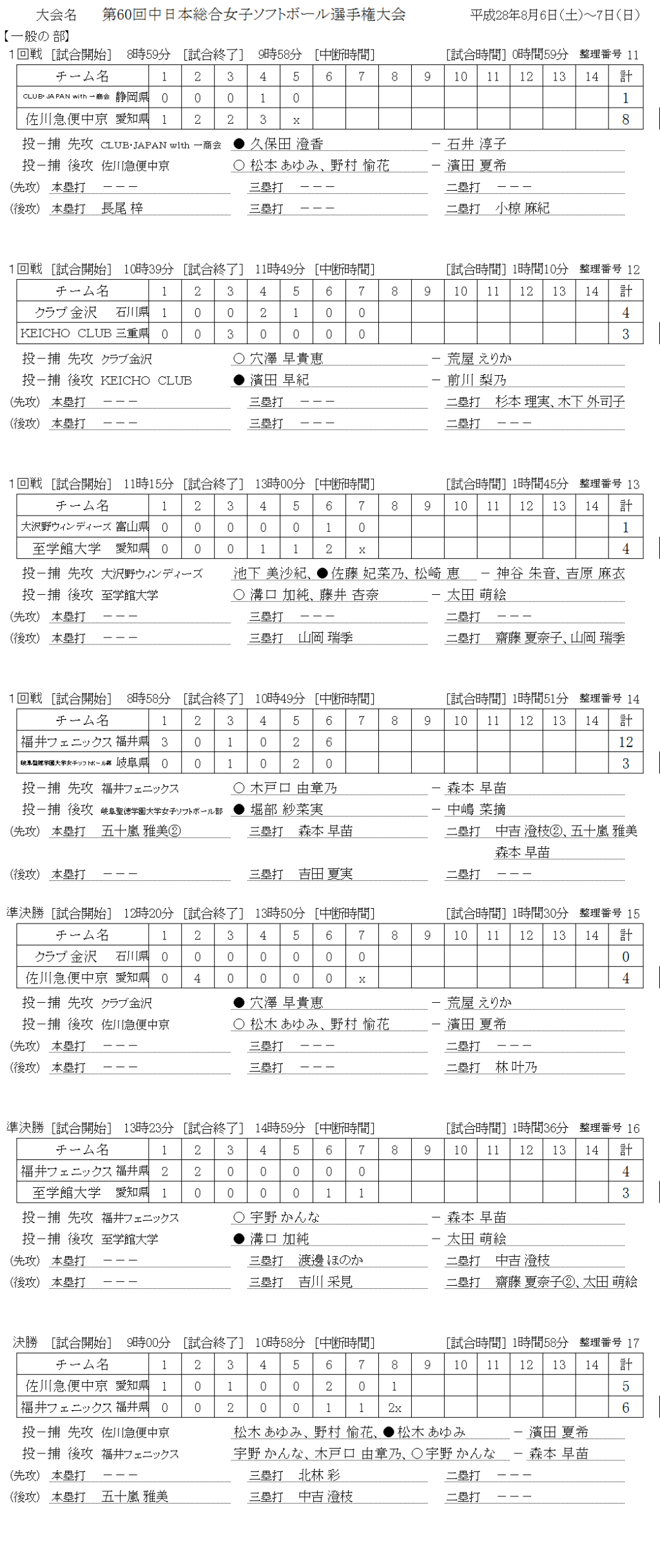 第60回中日本総合女子選手権大会 一般女子 記録(スコア―)