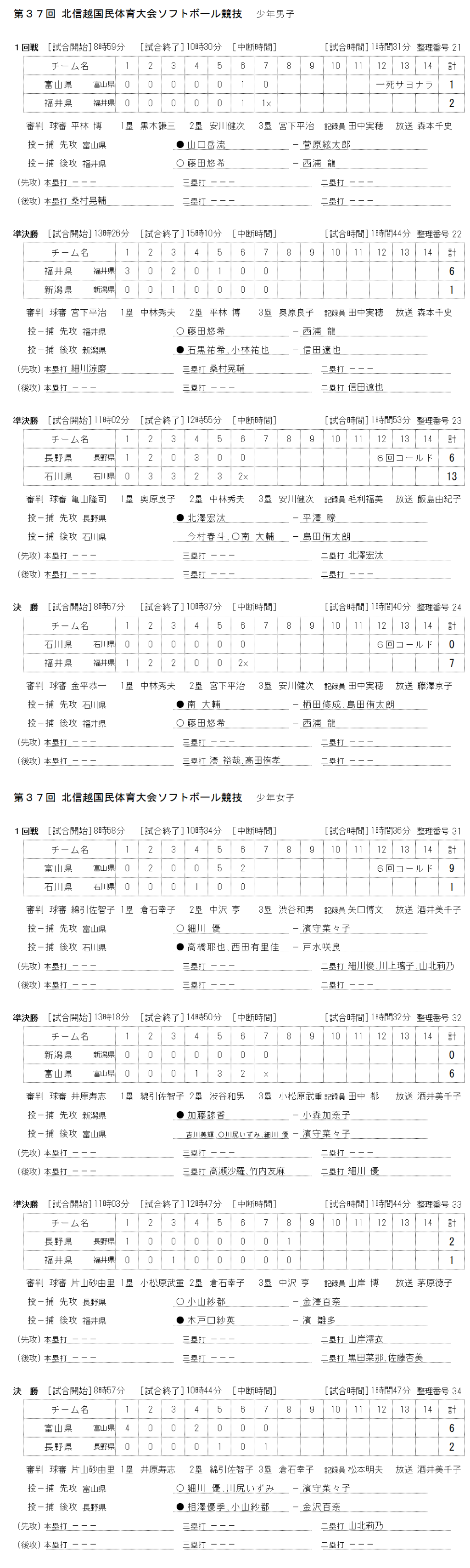 第37回北信越国民体育大会 少年男子、女子 記録(スコア―)