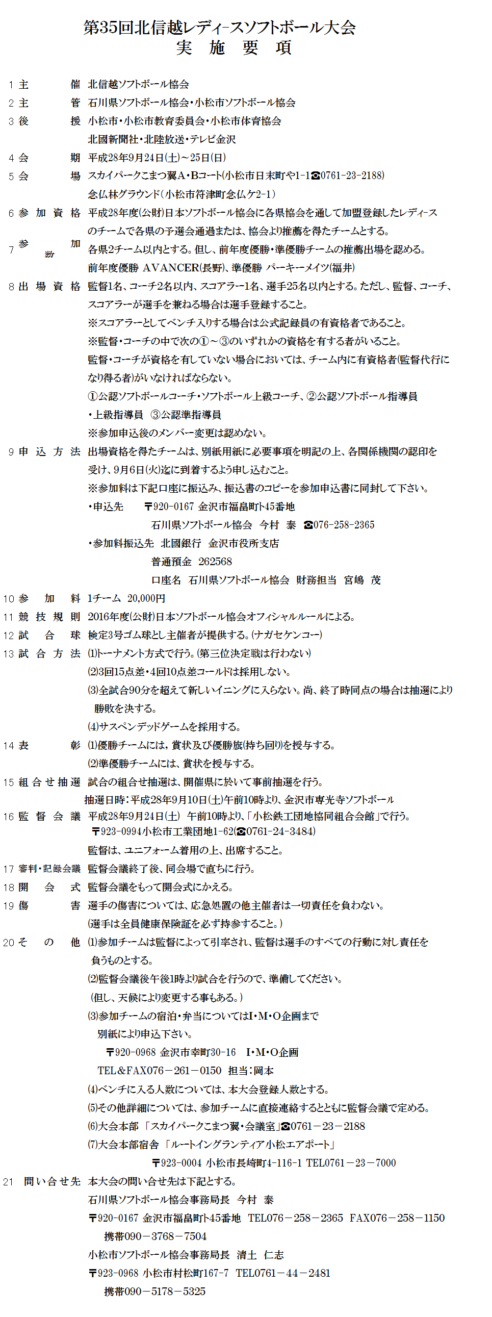 第35回北信越レディース大会 要項