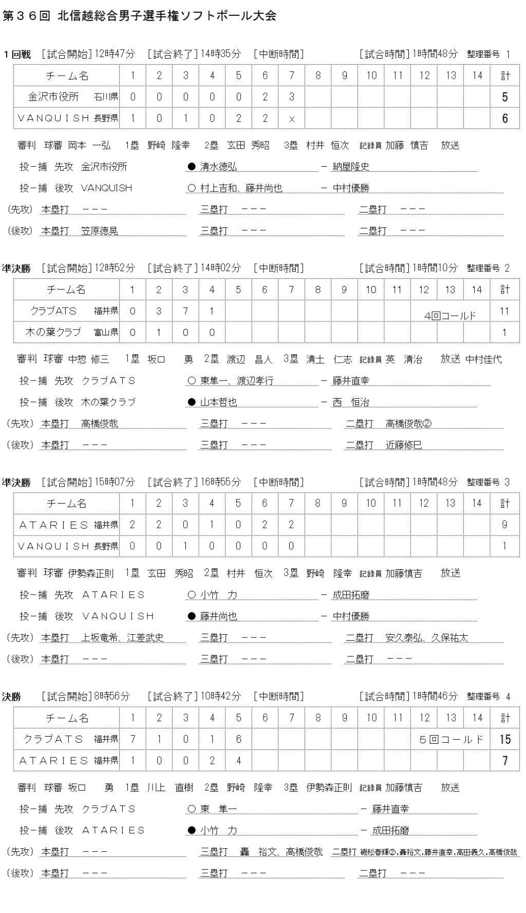 第36回北信越総合男子選手権大会 記録(スコア―)