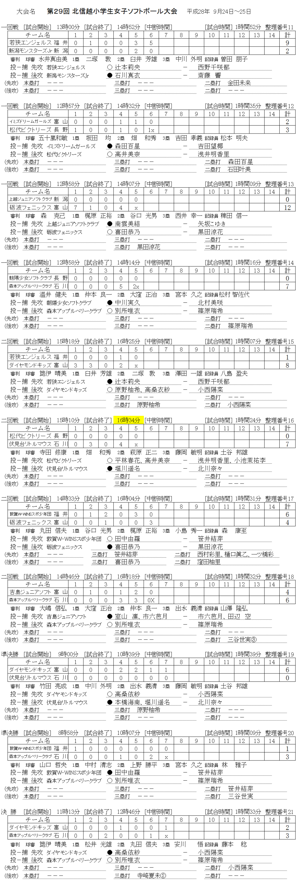 第29回 北信越小学生女子大会 記録(スコア―)