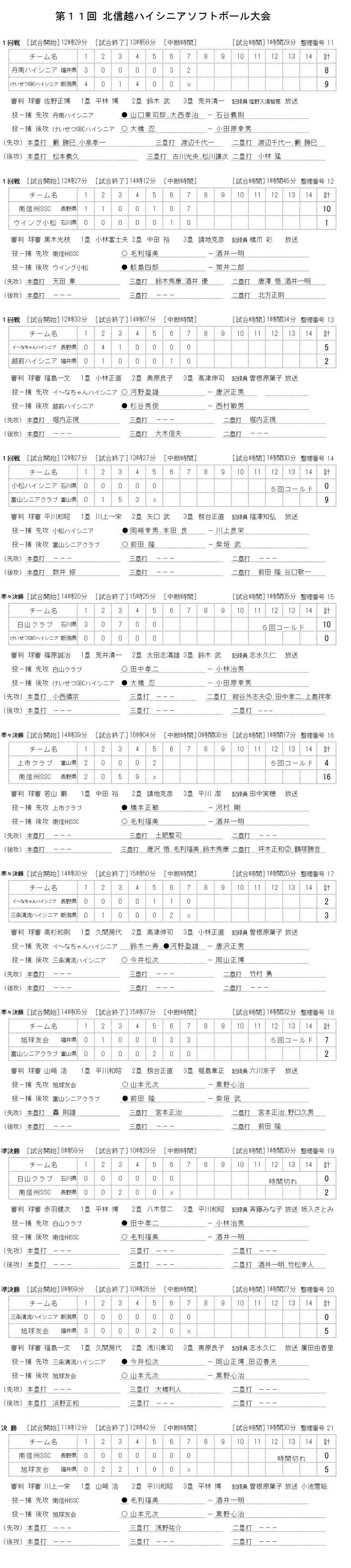 第11回 北信越ハイシニア大会 記録(スコア―)