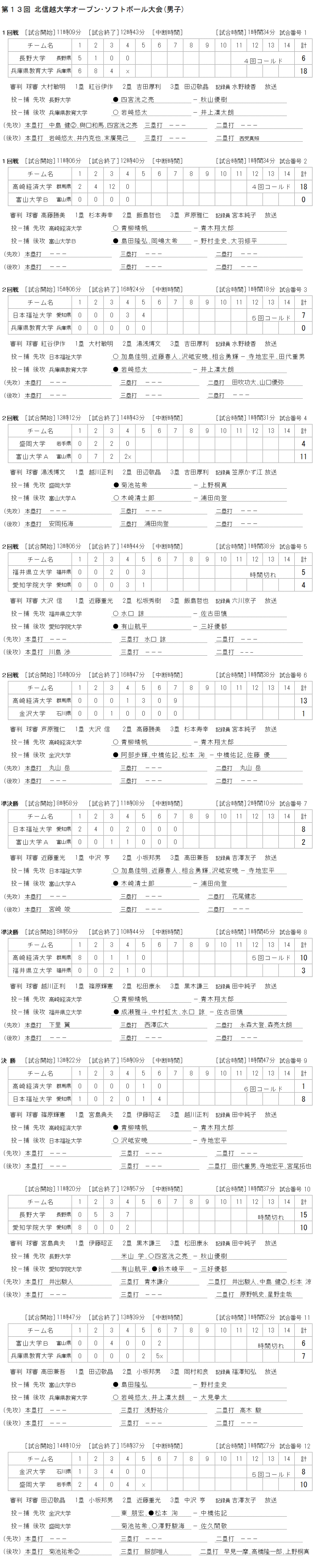 第13回 北信越大学オープン大会(男子) 記録(スコア―)