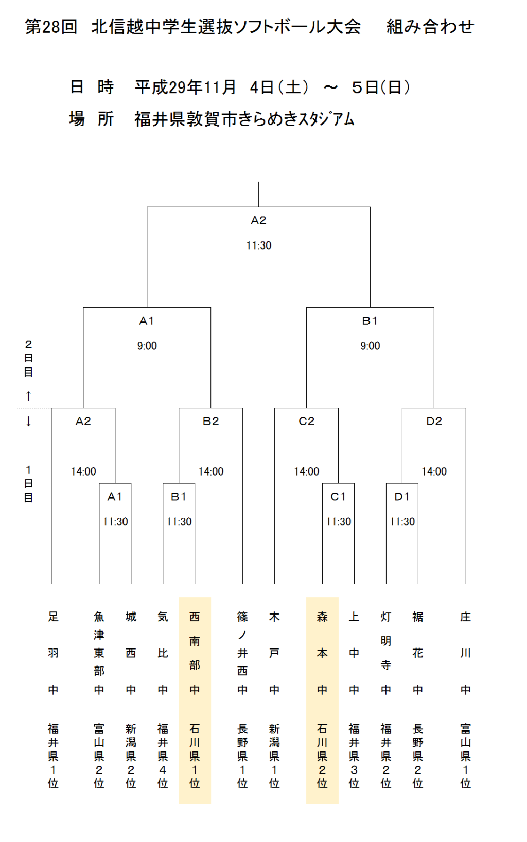 第28回北信越中学生選抜ソフトボール大会 組合せ
