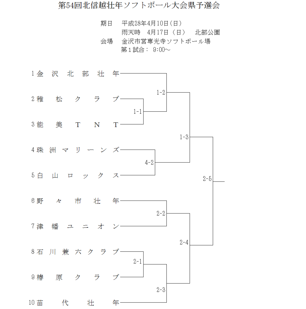 <抽選結果>第54回北信越壮年ソフトボール大会県予選会