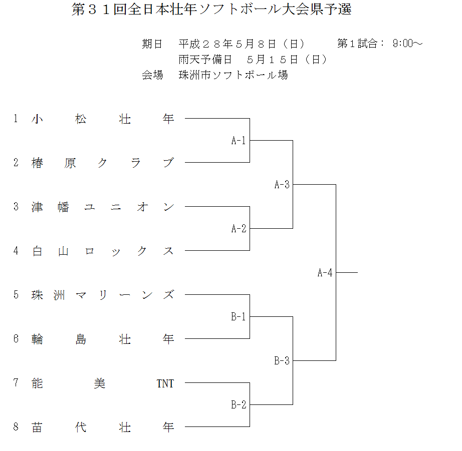 <抽選結果>第31回全日本壮年ソフトボール大会県予選