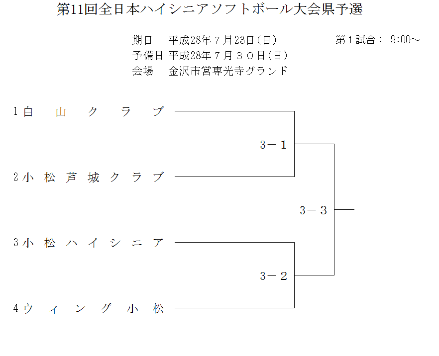 第11回全日本ハイシニアソフトボール大会県予選 <抽選結果>