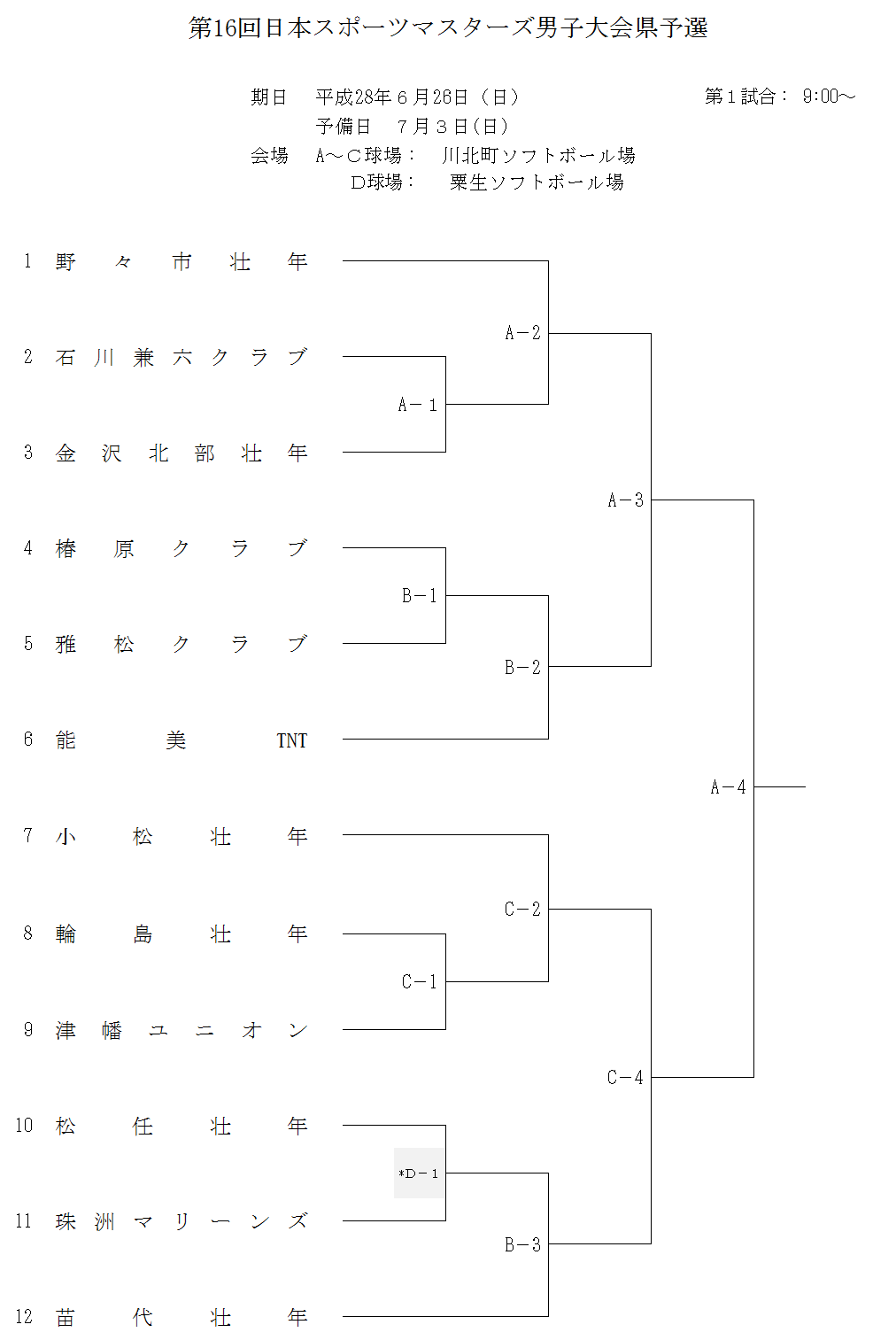 第16回日本スポーツマスターズ男子大会県予選 <抽選結果>