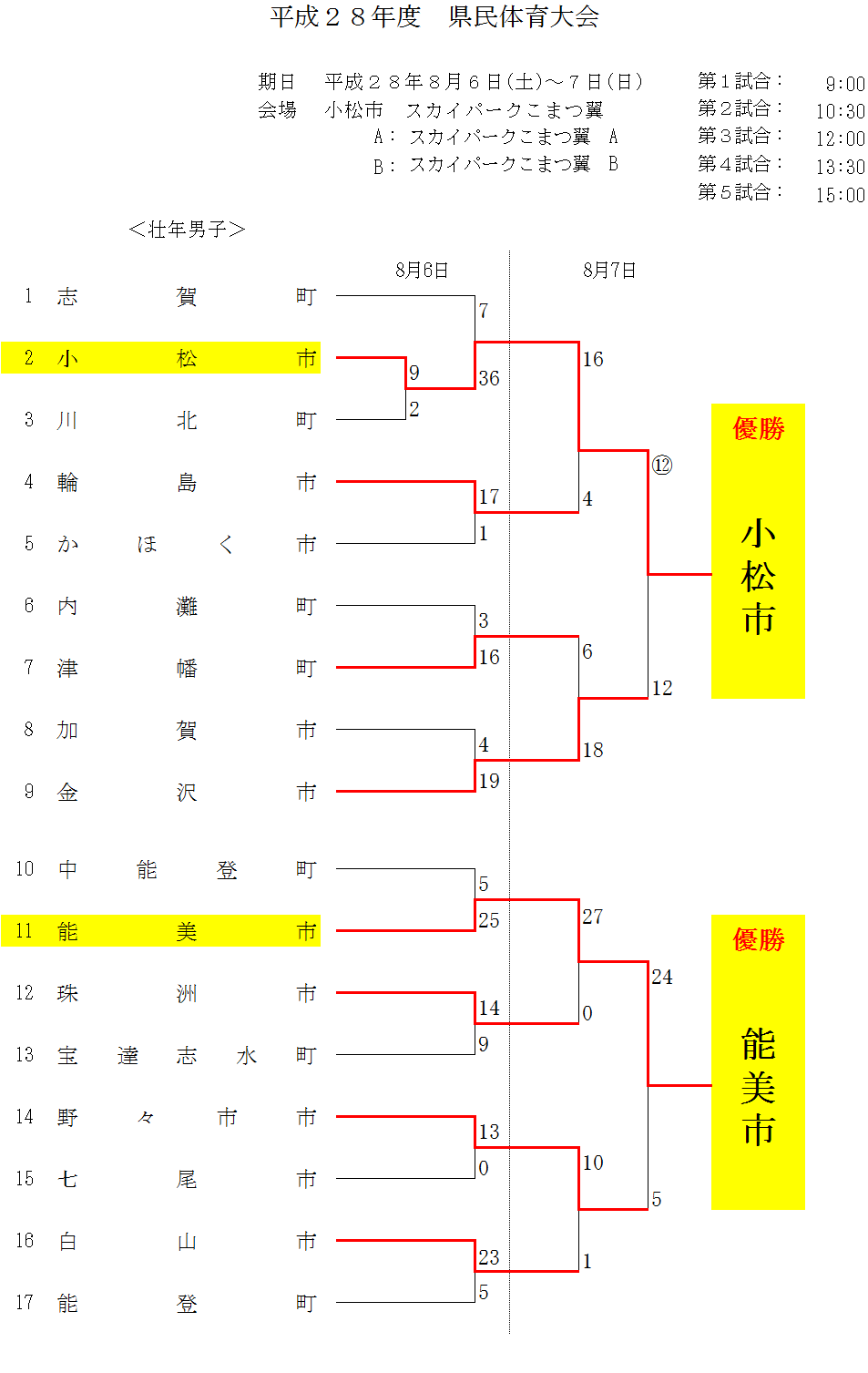 平成28年度 県民体育大会 壮年男子 結果