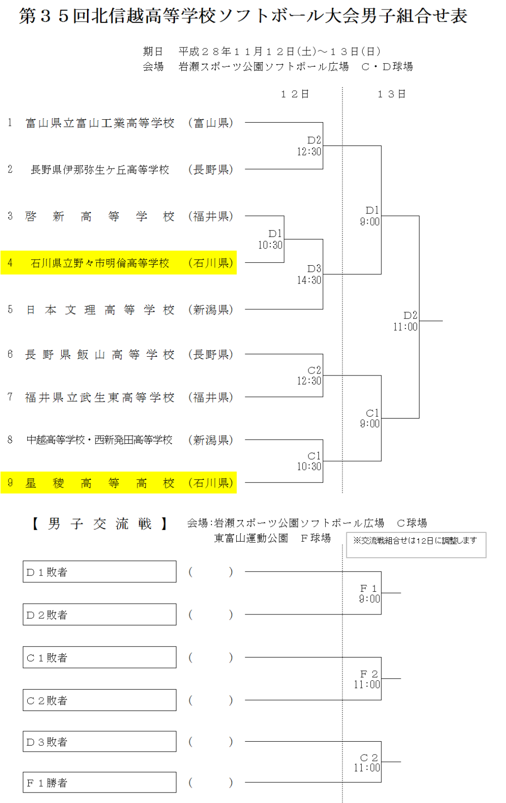 第35回北信越高等学校大会 男子 組合せ表