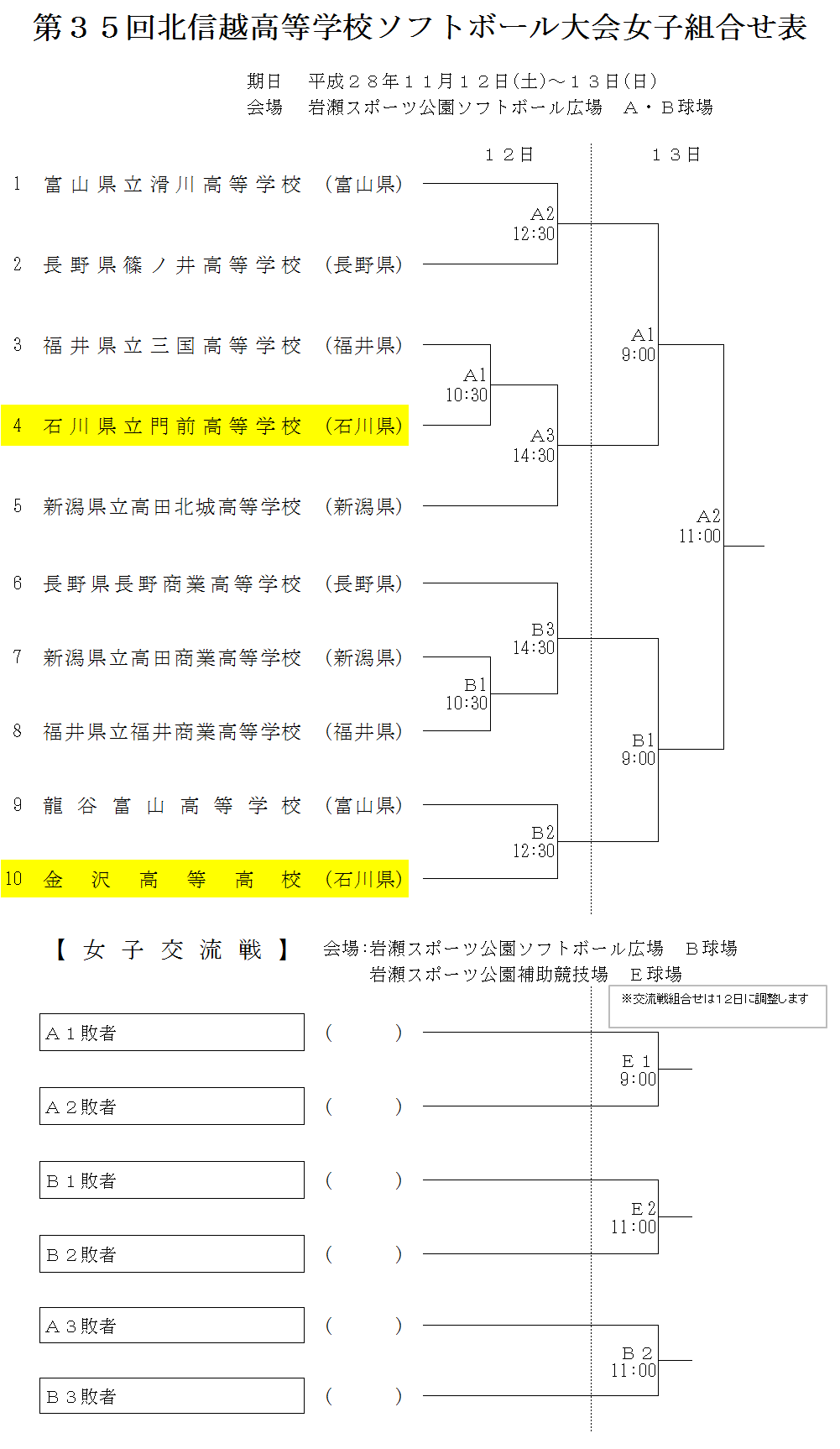 第35回北信越高等学校大会 女子 組合せ表
