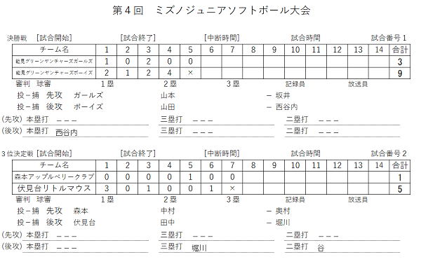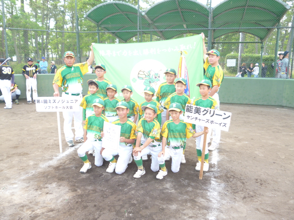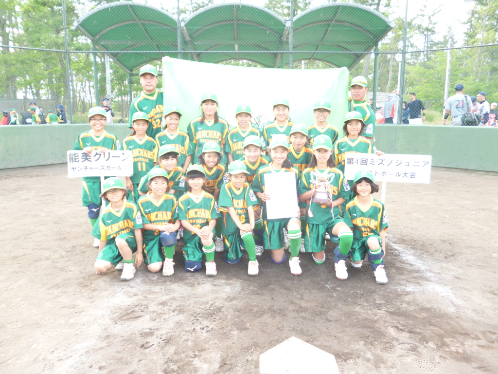 第4回ミズノジュニアソフトボール大会 小学第4回ミズノジュニアソフトボール大会 2018.05.31 結果(スコアー) 優勝チーム〈能美グリーンヤンチャーズボーイズ〉 準優勝チーム〈能美グリーンヤンチャーズガールズ〉