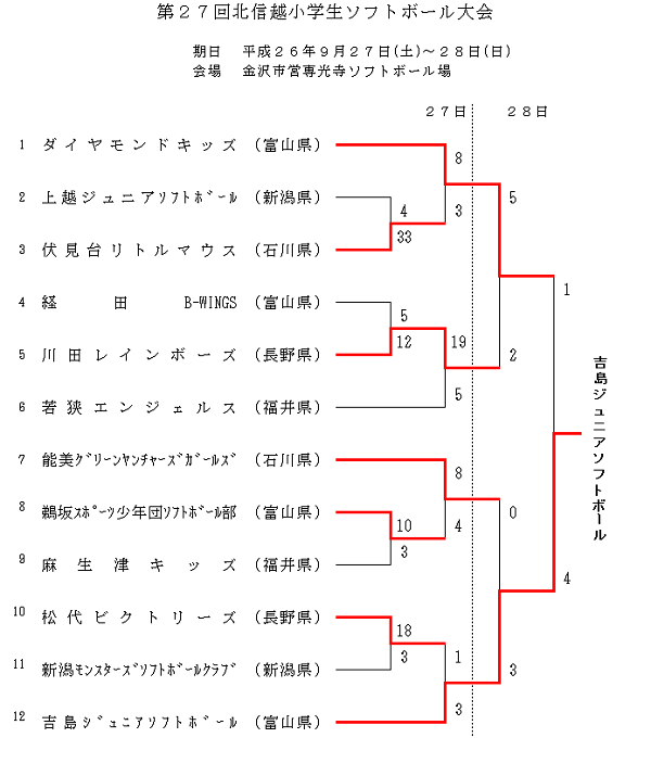 第27回北信越小学生女子ソフトボール大会 結果