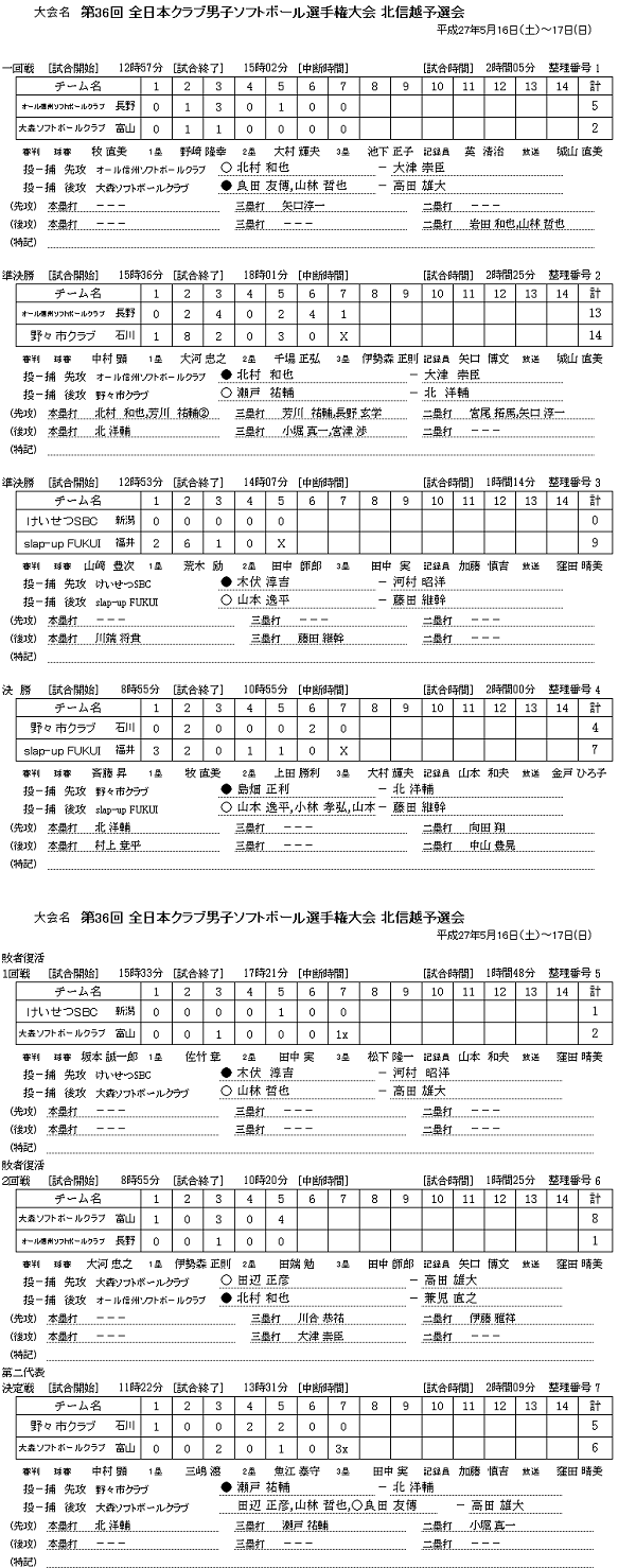 全日本クラブ男子 北信越予選会結果