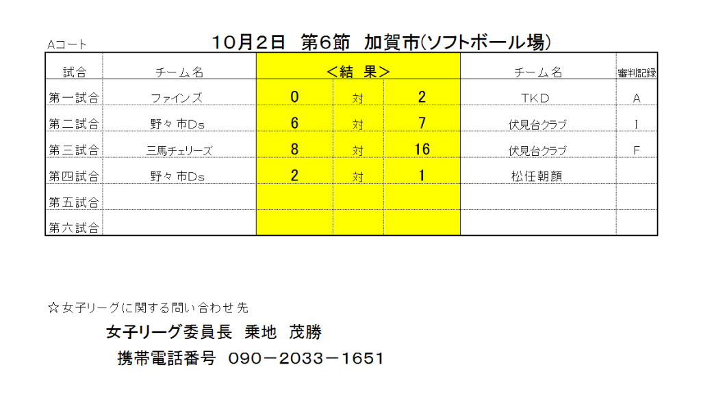 女子リーグ 第6節 (最終戦)