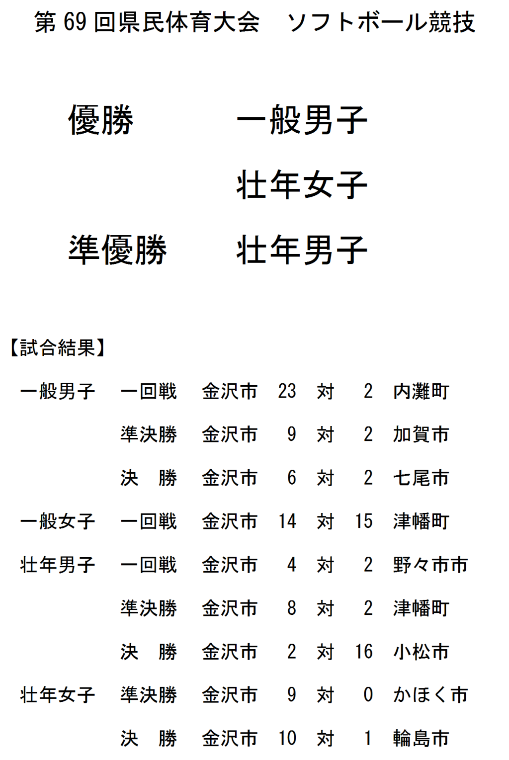 第69回県民体育大会 結果