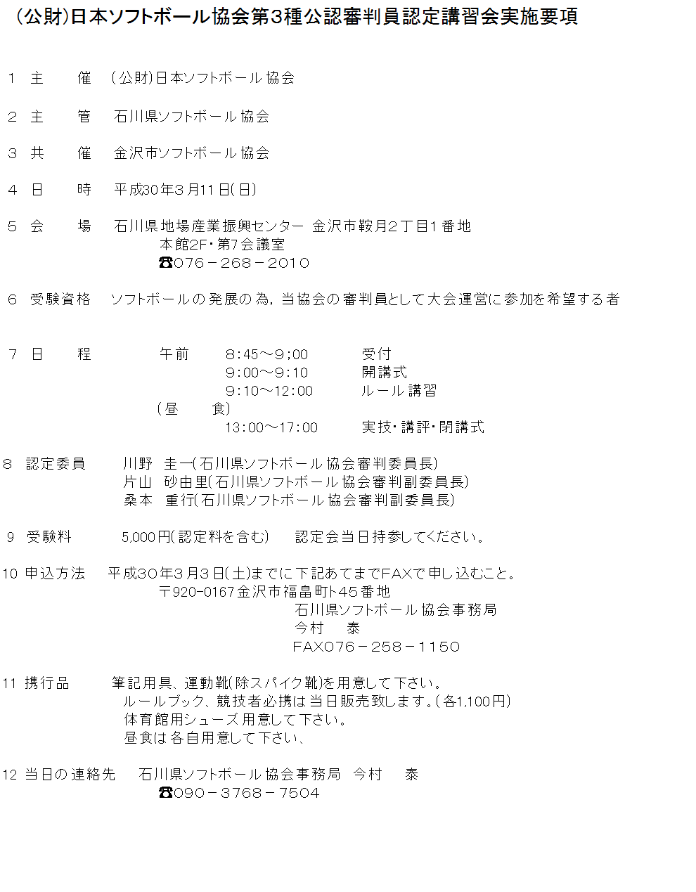 (公財)日本ソフトボール協会第3種公認審判員認定講習会実施要項