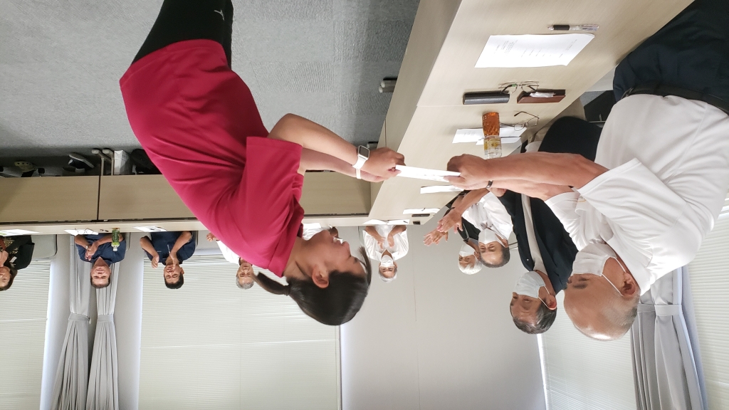 第5回常任理事会・第3回理事会の冒頭で、激励費の贈呈を行いました。