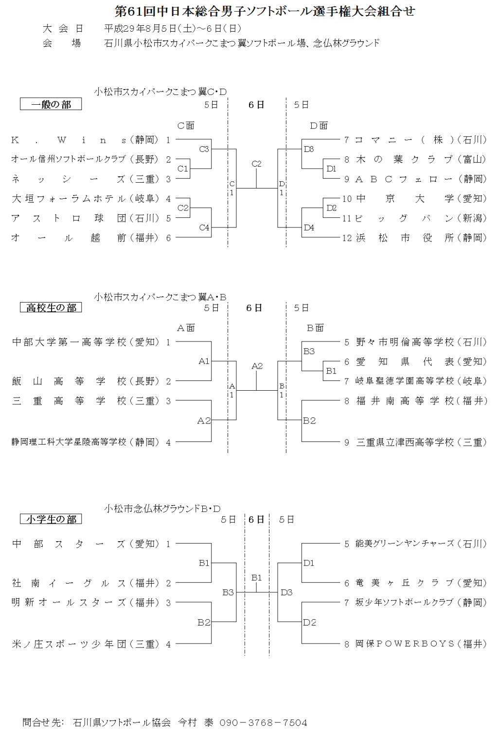 第61回中日本総合男子ソフトボール選手権大会 組合せ <全体>