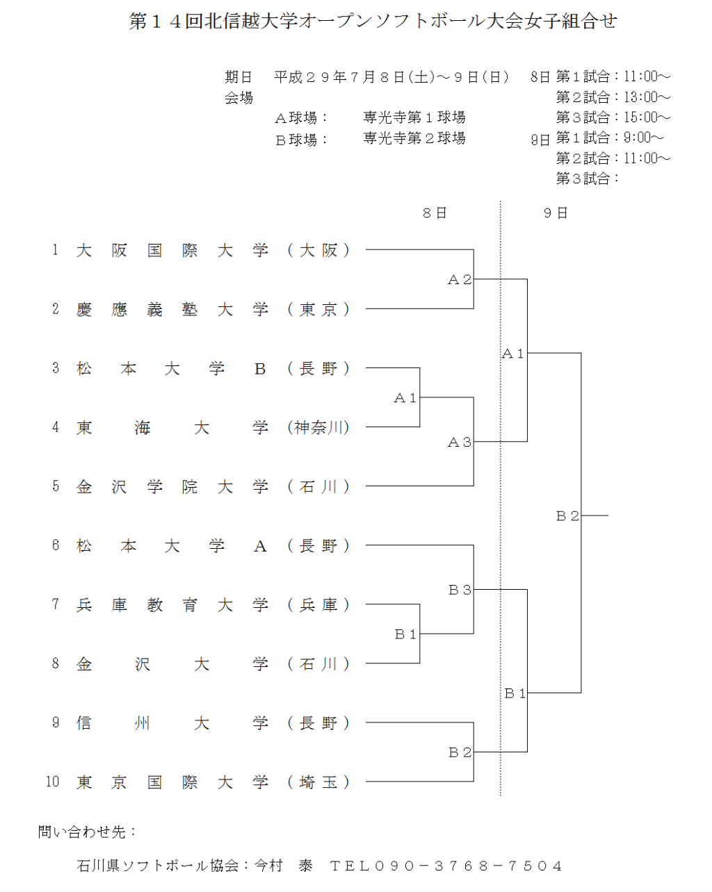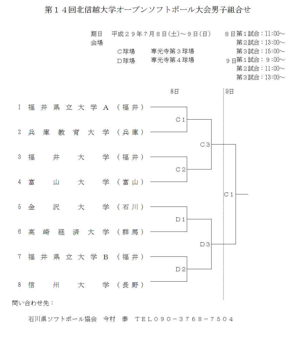 第14回北信越大学オープンソフトボール大会 男子 組合せ