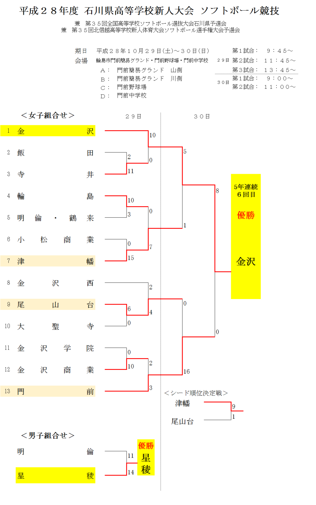 平成28年度 石川県高校新人大会 トーナメント表 結果