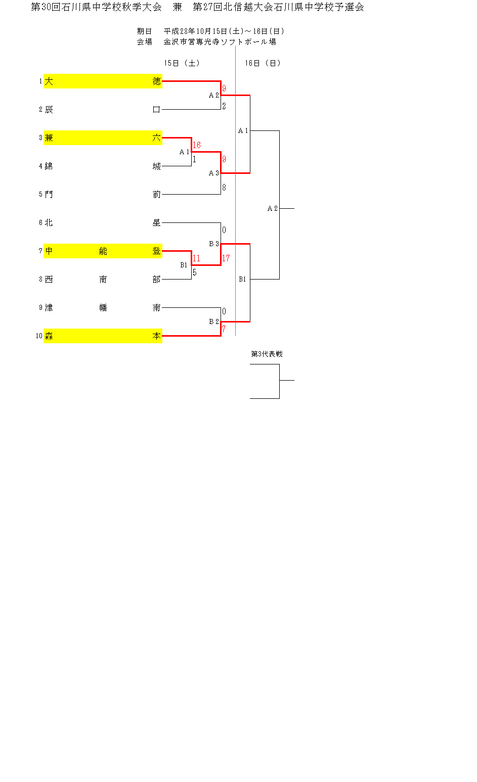 第30回石川県中学校秋季新人大会 第1日目結果