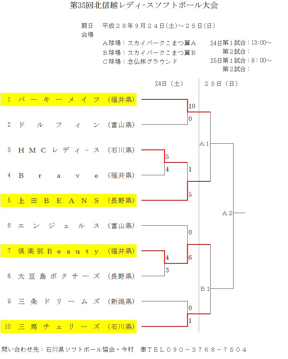 第35回北信越レディ-ス大会 1日目の結果