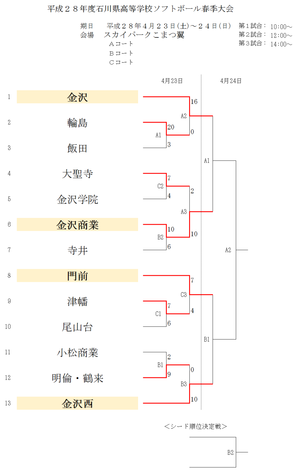 2016高校生春季大会 女子 一日目の結果