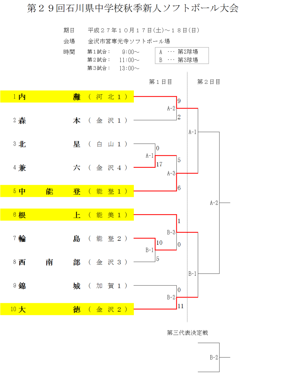 中学校秋季新人 1日目の結果