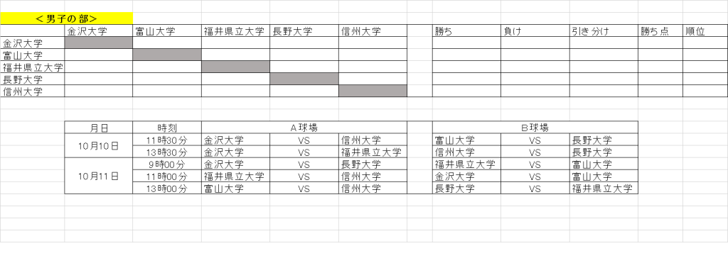 北信越大学新人選手権 男子<組合せ>