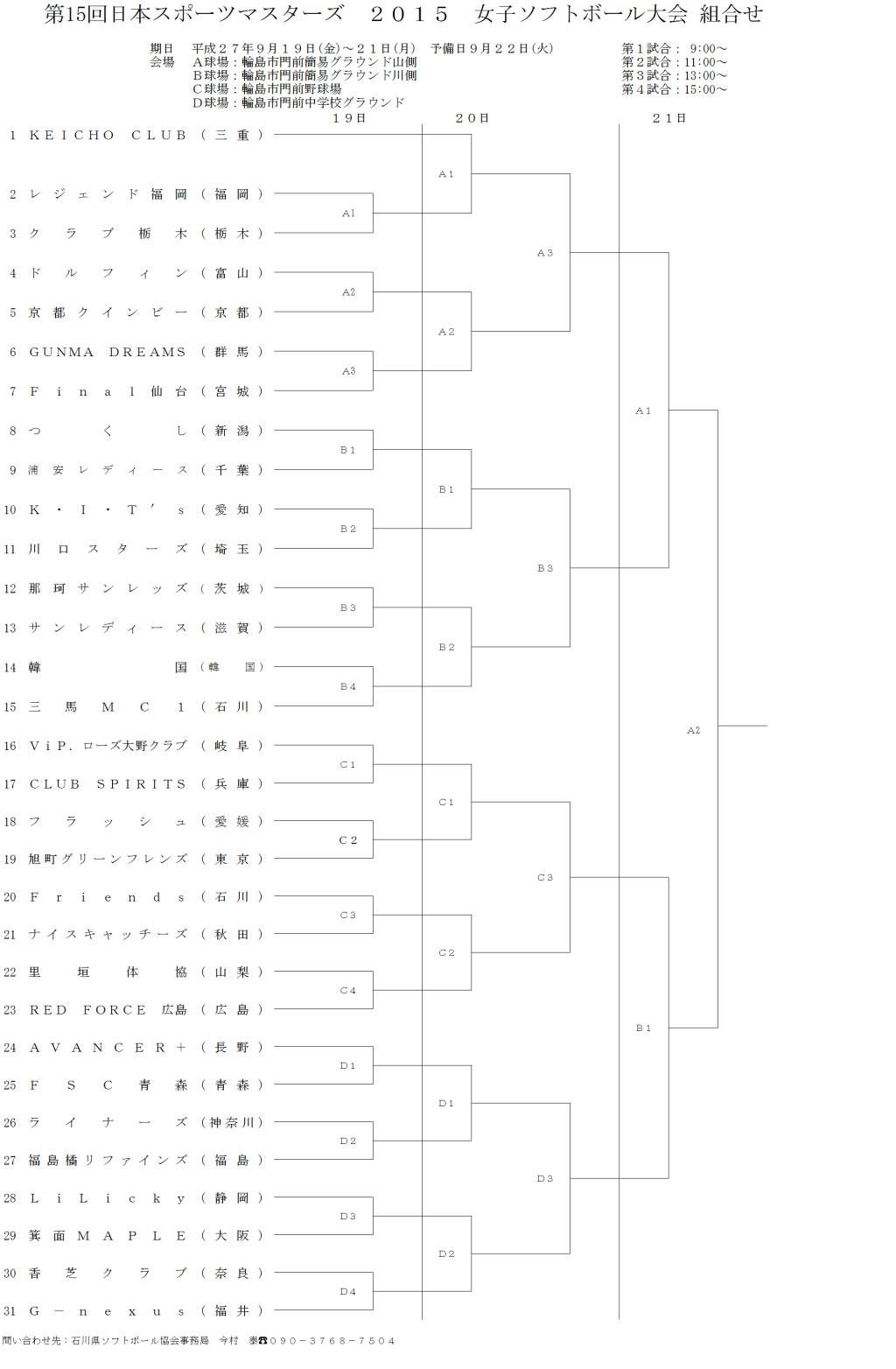 =速報=<組合せ>全日本マスターズ 石川大会 女子