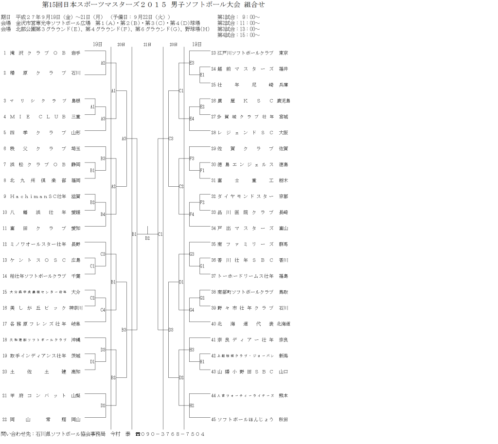 =速報=<組合せ>全日本マスターズ 石川大会 男子
