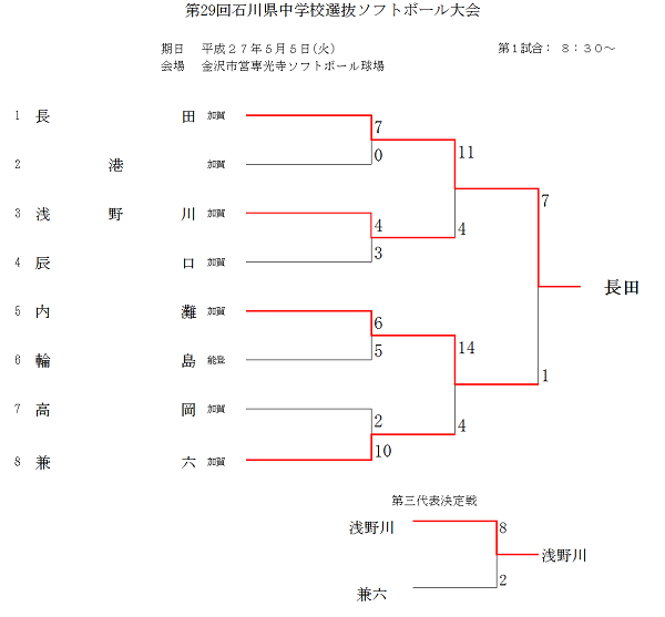 第29回石川県中学校選抜ソフトボール大会 (結果)