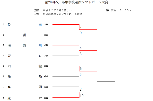 第29回石川県中学校選抜ソフトボール大会(1回戦の結果)